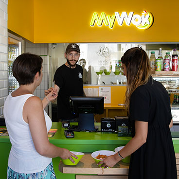 Nos restaurants sont aménagés afin de vous apporter un maximum de convivialité. Un grand soin a été apporté au choix des matériaux et des couleurs afin de vous procurer un ambiance agréable et décontractée. Vous pouvez aussi emporter My Wok avec vous pour le déguster en amoureux chez vous ou entre amis dans le parc voisin.